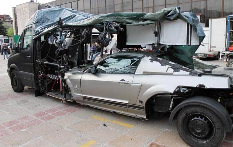 No pára-brisa dianteiro do carro foram colocadas câmeras, e atrás ficam o diretor e do operador, que cuidam das informações passadas por microfones, telas e todos os tipos de máquinas. A instalação foi criad há duas semanas na Bulgária.