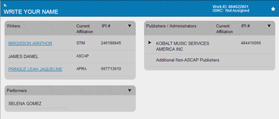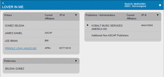 O site da American Society of Composers, Authors & Publishers (ASCAP) recebeu dois novos registros ligados à Selena Gomez. O primeiro, é de uma música chamada Lover In Me, que foi escrita por Selena, Daniel James e Brian Lee. O segundo, é da música Write Your Name, escrita por Daniel James, Jaqueline Pringle Leah & Arnthor Birgisson.